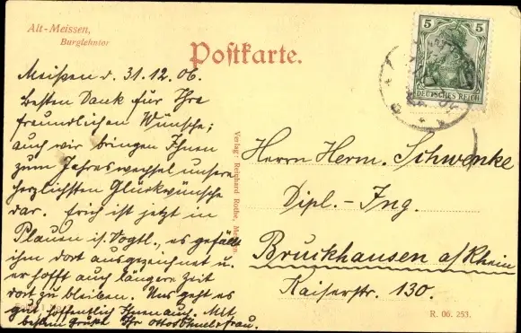 Zustand, siehe Scan, gelaufen, 1906 - ca 9 cm X 14 cm