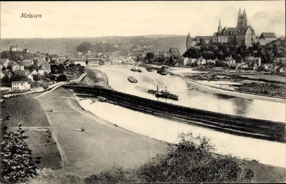 Ak Meißen an der Elbe, Panorama, Dampfer