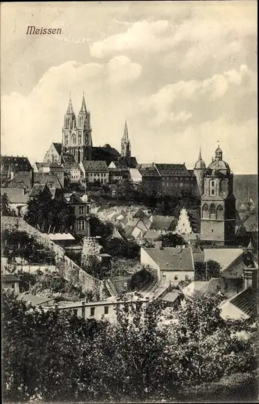 Ak Meißen an der Elbe, Panorama, Kirchturm