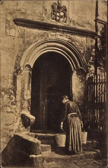 Ak Meißen in Sachsen, Burglehntor, Wasserträgerin