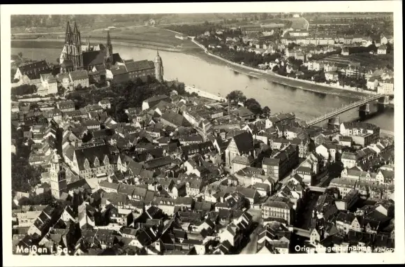 Ak Meißen in Sachsen, Fliegeraufnahme, Panoramablick auf die Stadt