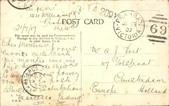 Zustand, siehe Scan, gelaufen, 1907 - ca 14 cm X 9 cm