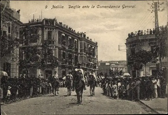 Ak Melilla Spanien, Parade vor dem Generalkommando