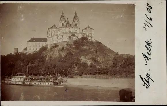 Ak Melk an der Donau Niederösterreich, Dampferpartie mit Kloster