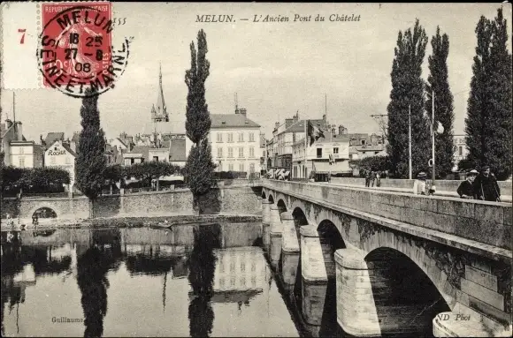 Ak Melun Seine et Marne, L'Ancien Pont du Chatelet