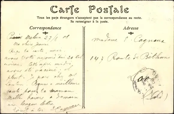 Zustand, siehe Scan, gelaufen, 1908 - ca 14 cm X 9 cm