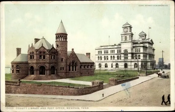 Ak Memphis Tennessee USA, Cossitt Bibliothek und Postamt