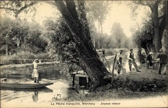Ak Mennecy Essonne, La Peche tranquille, Joyeux retour