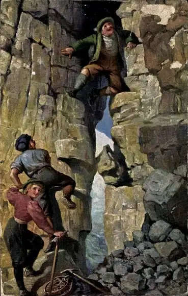 Ak Menschen beim Bergsteigen, Felsenwand, Spitzhacke