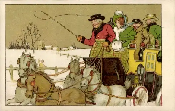 Ansichtskarte, Postkarte, Kutsche, Pferdegespann, Droschke, chariot, carro