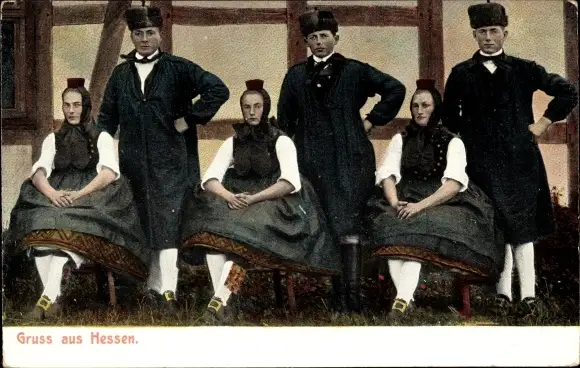 Ak Menschen in hessischen Trachten