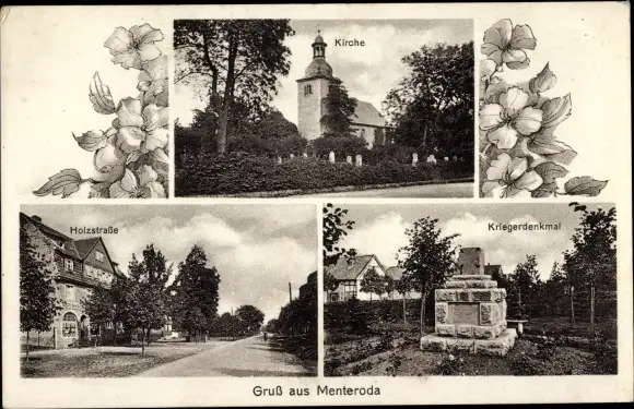 Ak Menteroda in Thüringen, Kirche, Kriegerdenkmal, Holzstraße
