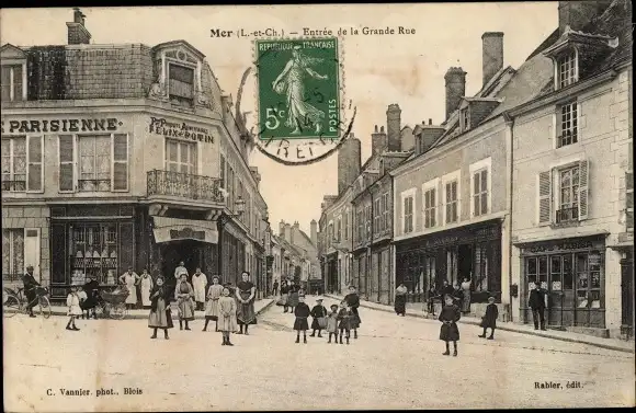 Ak Mer Loir et Cher, Entree de la Grande Rue, Cafe Rabier