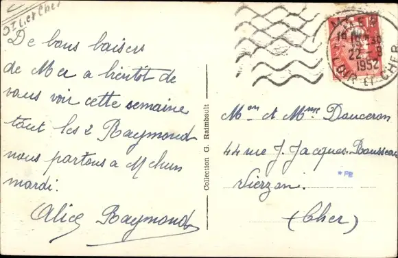 gelaufen 1952, Eckknick rechts unten, sonst guter Zustand