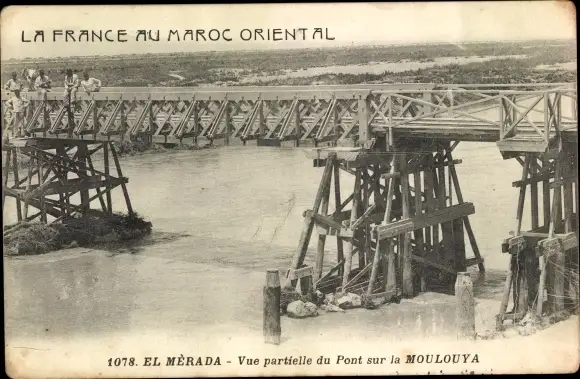 Ak Merada Marokko, Vue partielle du Pont sur la Moulouya