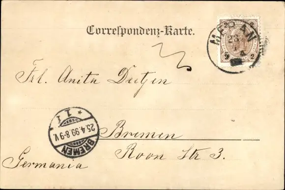 Zustand, siehe Scan, gelaufen, 1899 - ca 14 cm X 9 cm