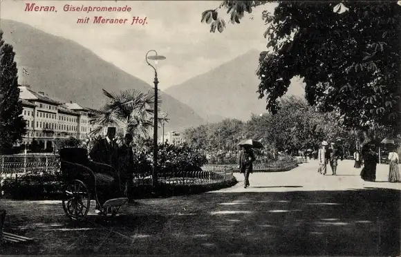 Ak Meran Merano Südtirol, Giselapromenade mit Meraner Hof