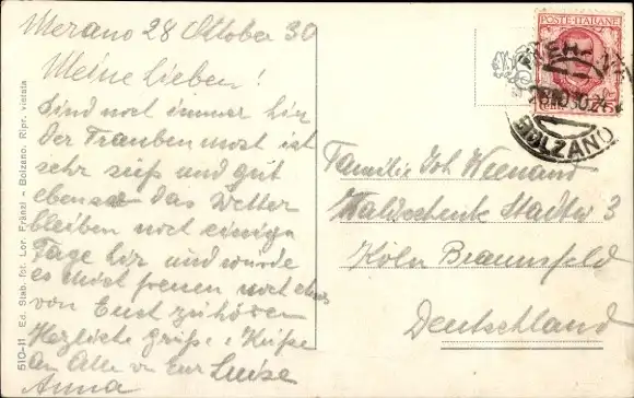 Zustand, siehe Scan, gelaufen, 1930 - ca 14 cm X 9 cm