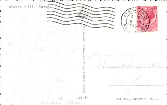 Zustand, siehe Scan, gelaufen, 1957 - ca 14 cm X 9 cm
