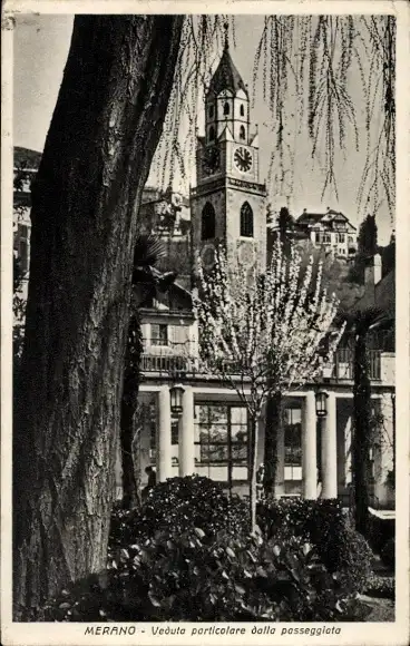 Ak Meran Merano Südtirol, Teilansicht, Glockenturm