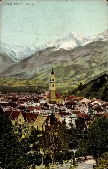 Ak Meran Merano Südtirol, Totale mit Kirche