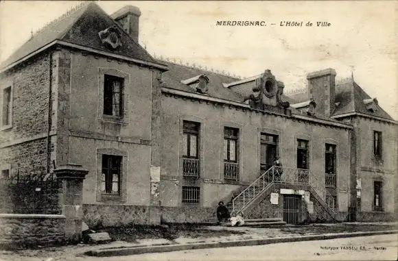 Ak Merdrignac Côtes-d’Armor, das Rathaus