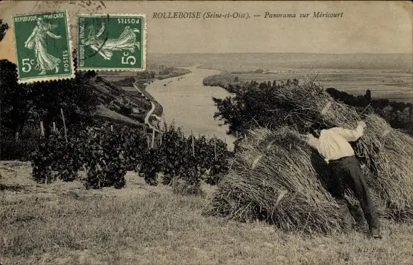 Ak Méricourt Yvelines, Panorama, Mann mit Heuhaufen