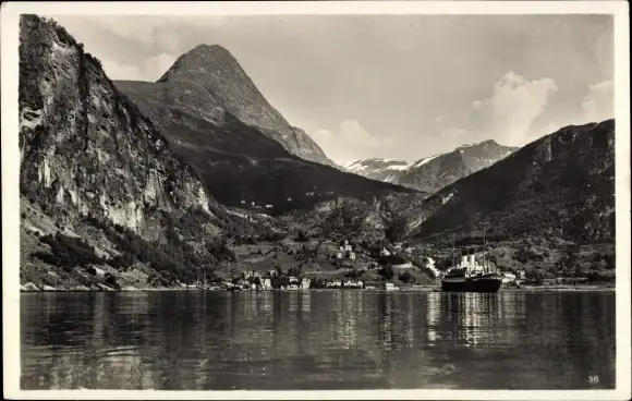 Ak Merok Geiranger Norwegen, Teilansicht, Dampfschiff