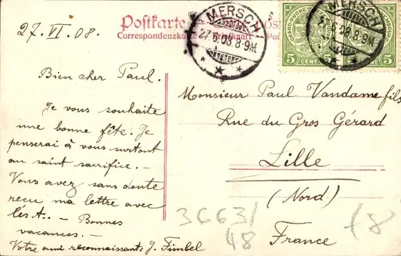 Zustand siehe Scan, gelaufen, 1908 - ca 14 cm X 9 cm