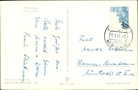 Zustand, siehe Scan, gelaufen, 1957 - ca 14 cm X 9 cm