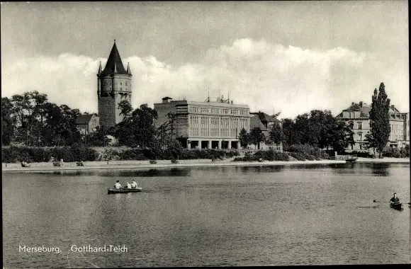 Ak Merseburg an der Saale, Gotthard Teich, Boote