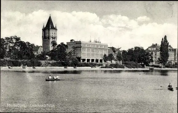 Ak Merseburg an der Saale, Gotthard Teich, Boote