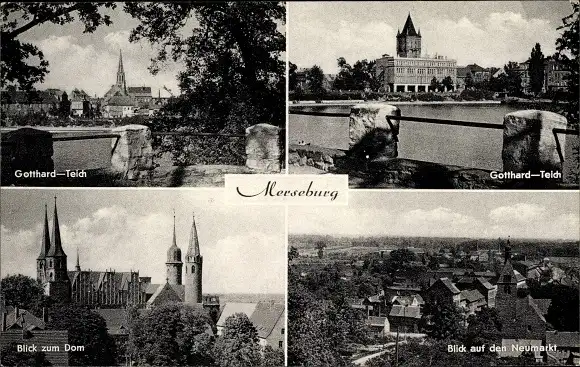 Ak Merseburg an der Saale, Gotthard Teich, Dom, Neumarkt