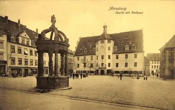 Ak Merseburg an der Saale, Markt, Rathaus, Brunnen