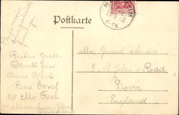 Zustand, siehe Scan, gelaufen, 1908 - ca 14 cm X 9 cm