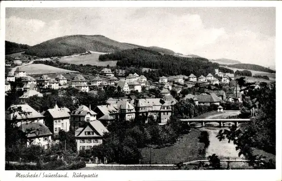 Ak Meschede im Sauerland, Teilansicht, Ruhr, Brücke