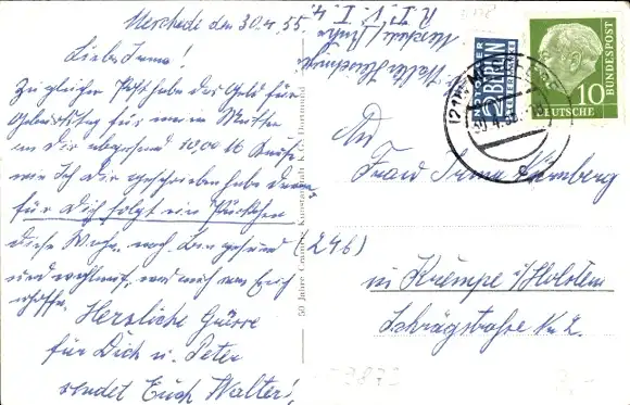 Zustand, siehe Scan, gelaufen, 1955 - ca 14 cm X 9 cm