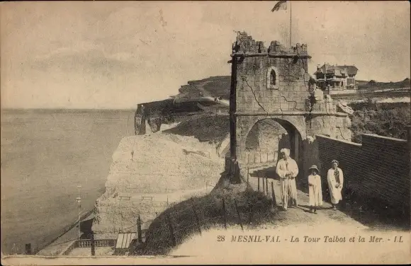 Ak Mesnil Val Seine Maritime, La Tour Talbot et la Mer, Küste, Turm