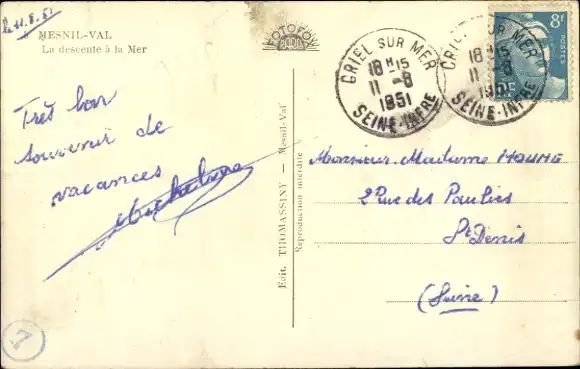 Ak Mesnil Val Seine Maritime, La descente a la Mer