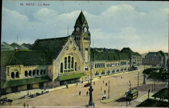 Ak Metz Moselle, Bahnhof, Straßenbahn