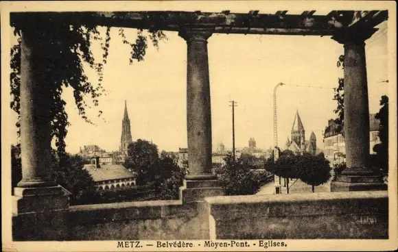 Ak Metz Moselle, Belvedere, Moyen-Pont, Kirchen