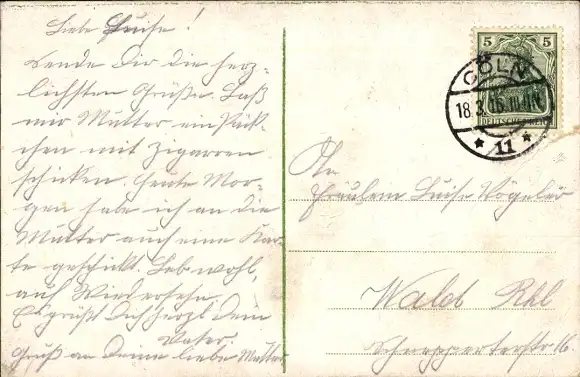 Zustand, siehe Scan, gelaufen, 1916 - ca 14 cm X 9 cm