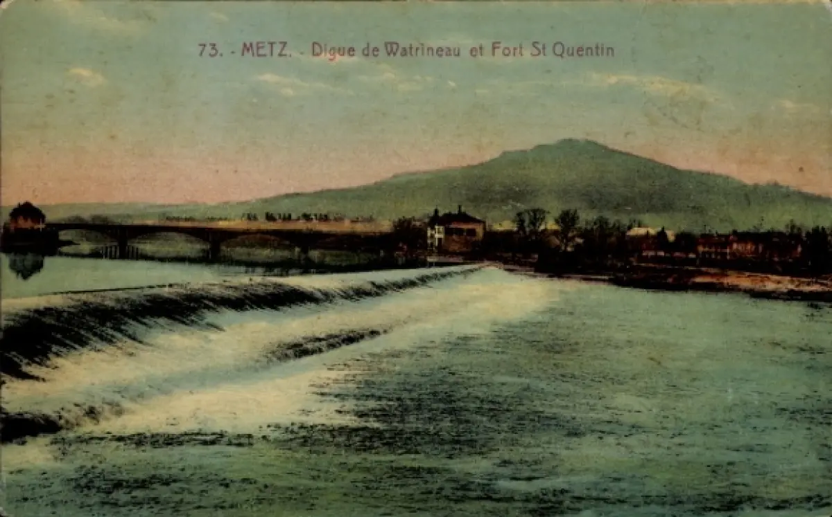 Ak Metz Moselle, Digue de Watrineau, Fort St Quentin, Flusslandschaft