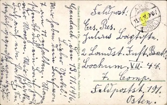 Zustand siehe Scan, gelaufen, 1916 - ca 14 cm X 9 cm