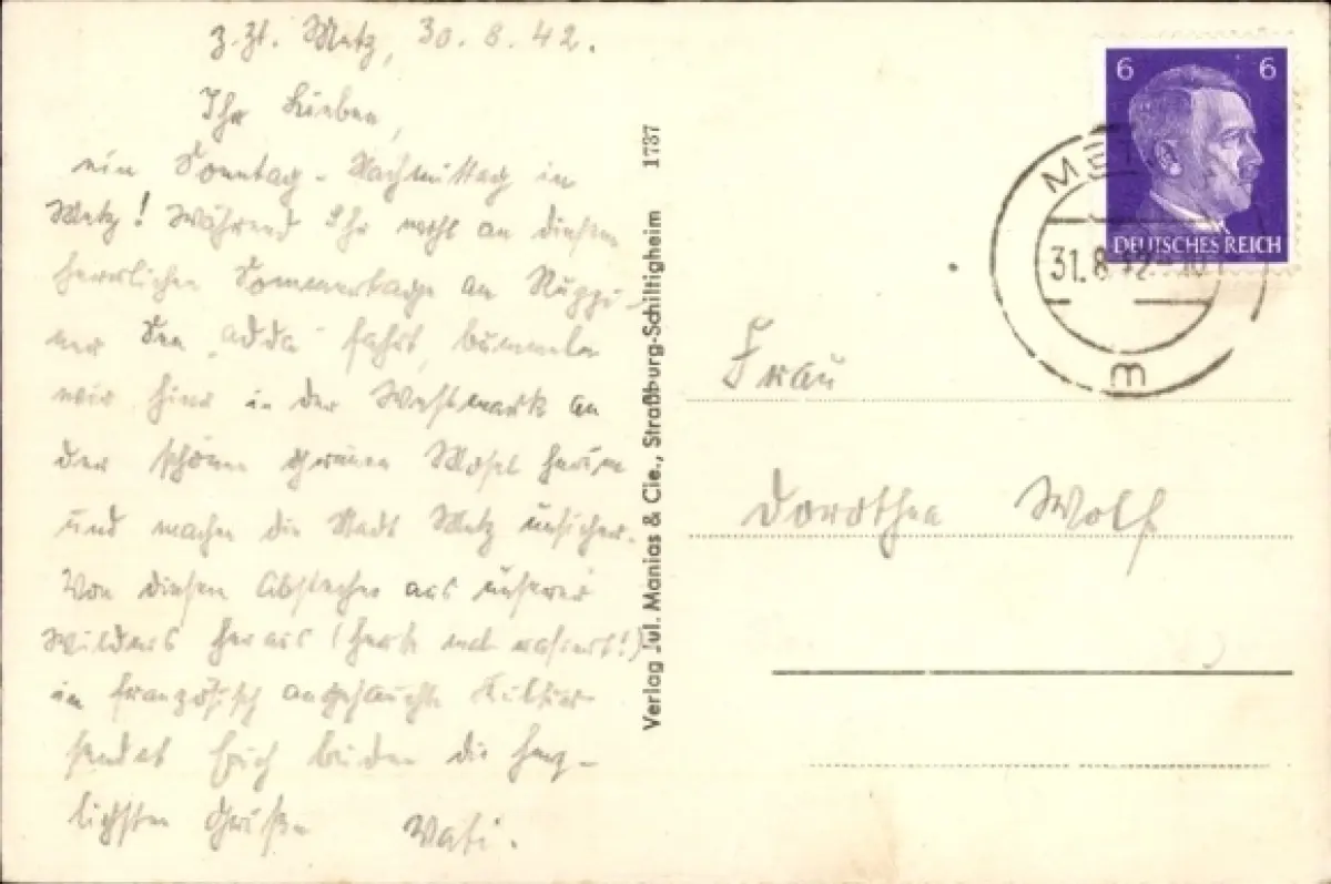 Zustand siehe Scan, gelaufen, 1942 - ca 9 cm X 14 cm