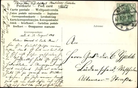 Zustand, siehe Scan, gelaufen, 1908 - ca 14 cm X 9 cm