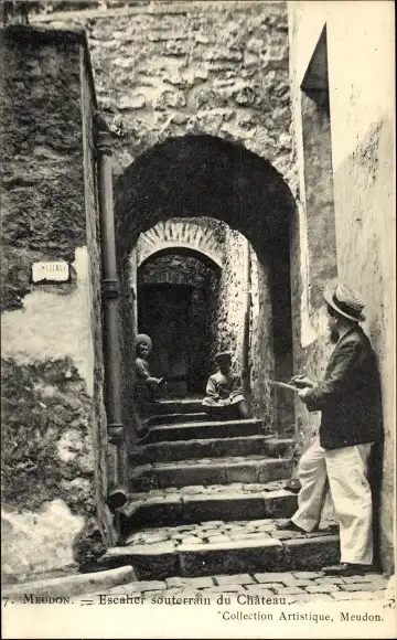 Ak Meudon Hauts de Seine, Escalier souterrain du Chateau, Peintre