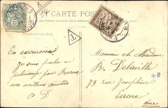 Zustand, siehe Scan, gelaufen, 1907 - ca 14 cm X 9 cm