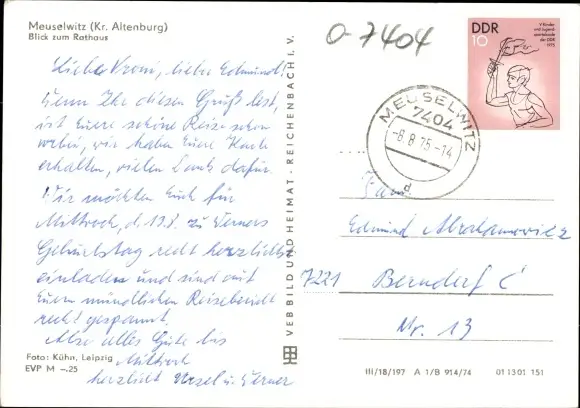 Ak Meuselwitz in Thüringen, Blick zum Rathaus, Textilien u. Lebensmittelgeschäft
