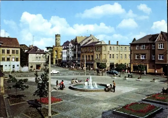 Ak Meuselwitz in Thüringen, Markt, Brunnen, Blumenbeete
